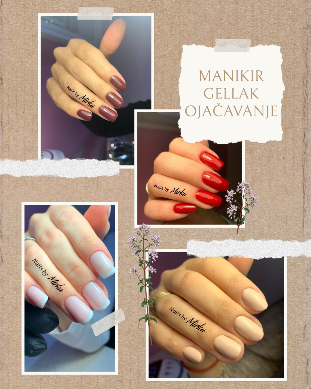 Profesionalno ojačavanje noktiju je estetsko–negovna usluga namenjena jačanju prirodnih noktiju, poboljšanju njihove strukture i postizanju urednog, negovanog izgleda. Ovaj tretman je idealno rešenje za nokte koji su slabi, lomljivi, listaju se ili teško zadržavaju željeni oblik i dužinu.